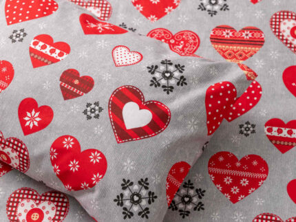 Σεντόνι Χριστουγεννιάτικο Καρδιές Διπλό 220 x 240 cm 100% Βαμβάκι Γκρι BOREA