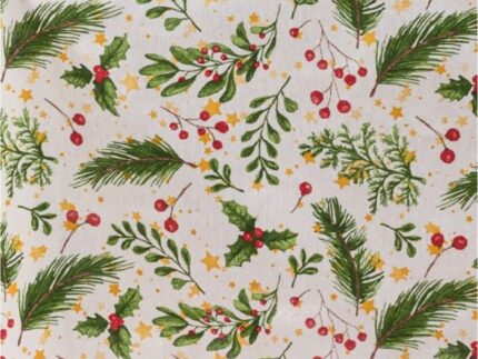 Καρέ από ύφασμα λονέτα 50% βαμβακερό-50% πολυέστερ, με εμπριμέ χριστουγεννιάτικο σχέδιο.