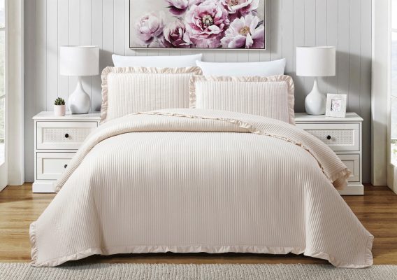 Κουβερλί/Κουβερτόριο ARMONY (Cream) Bedspread 100% prewashed & καπιτονέ κέντημα / ruffle 180×240 Liolios Home
