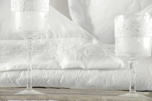 Σετ νυφικό κουβερλί LACE Makis Tselios βαμβακoσατέν με υπέροχη λεπτομέρεια δαντέλας