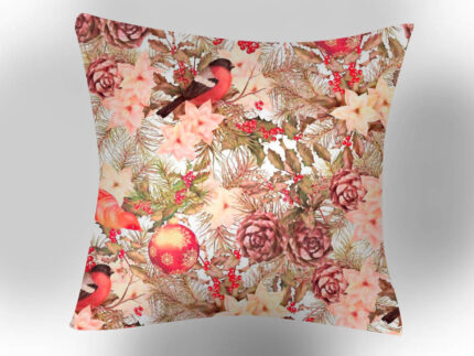 Μαξιλαροθήκη Διακοσμητική Χριστουγεννιάτικη Σχέδιο Robin 45 x 45 cm 100% Βαμβάκι Εκρού BOREA