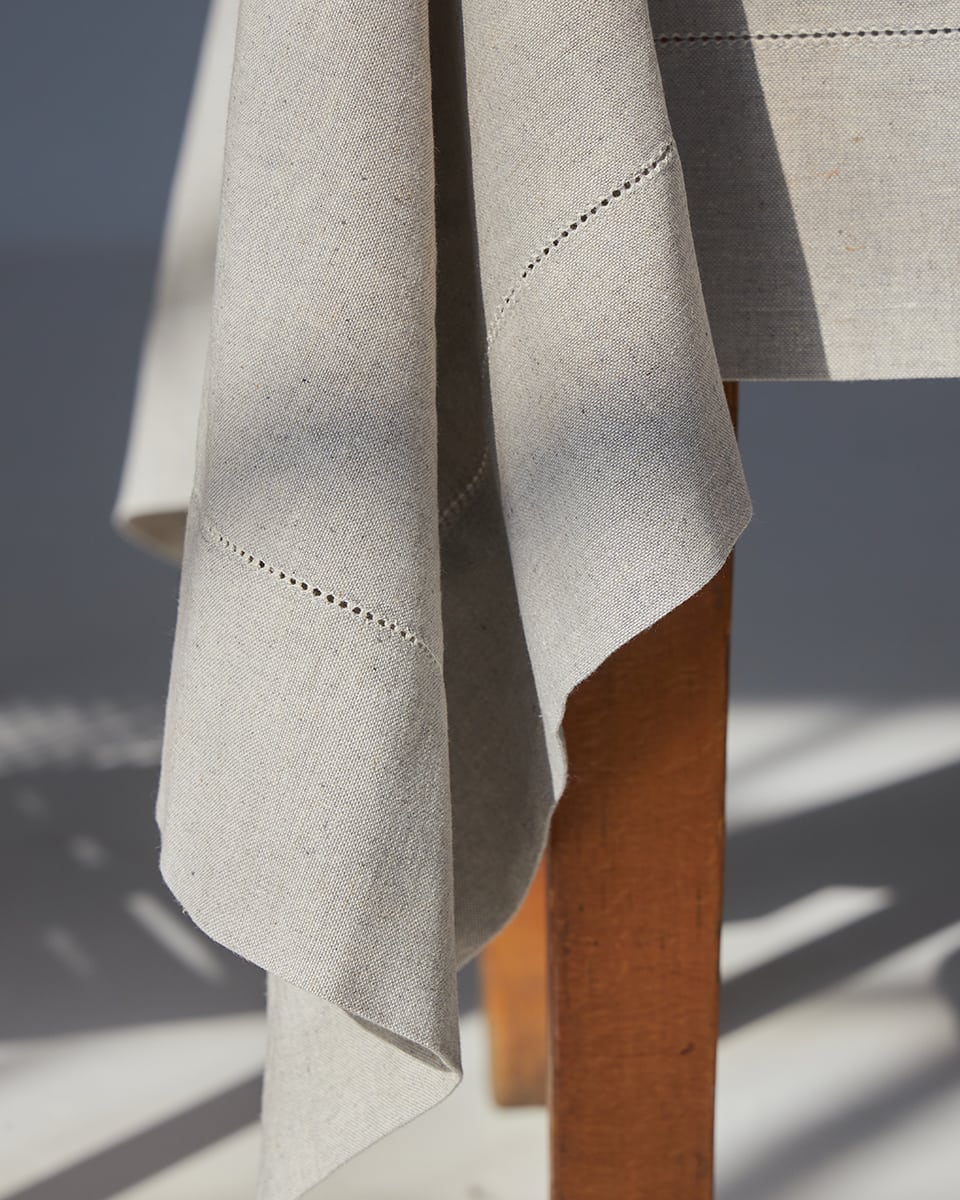 Μονόχρωμο τραπεζομάντηλο με αζούρ και γαλλική γωνία 8εκ. στο τελείωμα, από σύμμεικτο λινό ύφασμα.