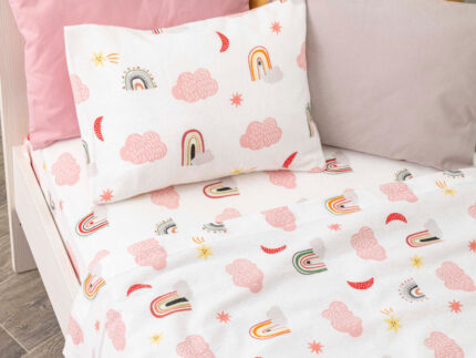 Σεντόνια Κούνιας Φανελένιο Σετ Rainbow Ροζ (2) 120 x 160 cm + 30 x 40 cm 100% Βαμβάκι Ροζ BOREA