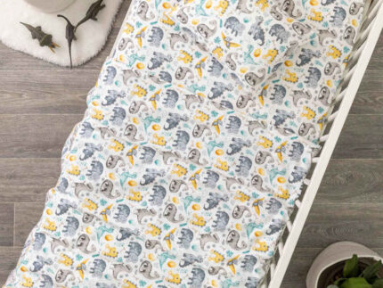 Σεντόνια Κούνιας Φανελένιο Σετ Δεινόσαυροι (2) 120 x 160 cm + 30 x 40 cm 100% Βαμβάκι Γκρι BOREA