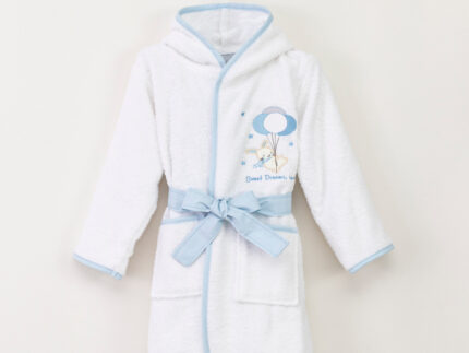 Μπουρνούζι Βρεφικό Sweet Dreams Baby Λευκό-Σιέλ (3-4) 100% Βαμβάκι Λευκό-Σιέλ BOREA