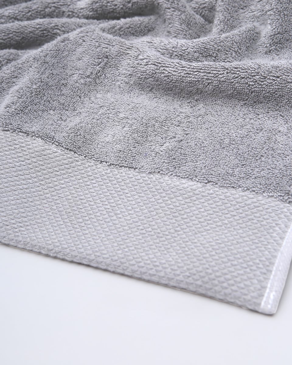 Μονόχρωμη πετσέτα με φαρδιά 3D πικέ φάσα, από 100% βαμβακερά νήματα.