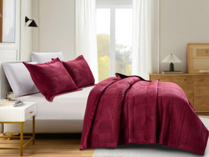 Palmira (Burgundy) Κουβερλί/Κάλυμμα κρεβατιού 100% luxury velvet & καπιτονέ κέντημα Bedspread 180×240+Μαξ/θήκη 50×70/1pcs Liolios Home