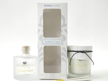 Σετ Αρωματικό Χώρου με Στικ 70ml & Αρωματικό Κερί 130gr – Amber Lace της Nima Home Αρωματικό με Στικ 70ml + Αρωματικό Κερί 130gr