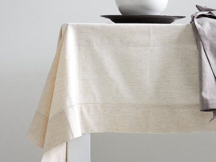 Μονόχρωμο Τραπεζομάντηλο με Αζούρ & Γαλλική Γωνία Amadora 12 ατόμων (150x300cm) Natural της Pennie