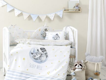 Κουβερλί Κούνιας – Sleepy Racoon της Nima Bebe 100% Cotton, 144 T.C. Κούνιας 100×140